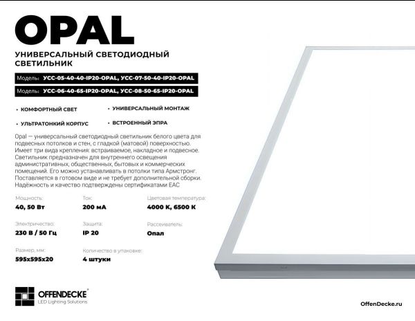 Светильник светодиодный OffenDecke рассеиватель OPAL IP20 6500К (40 Вт)